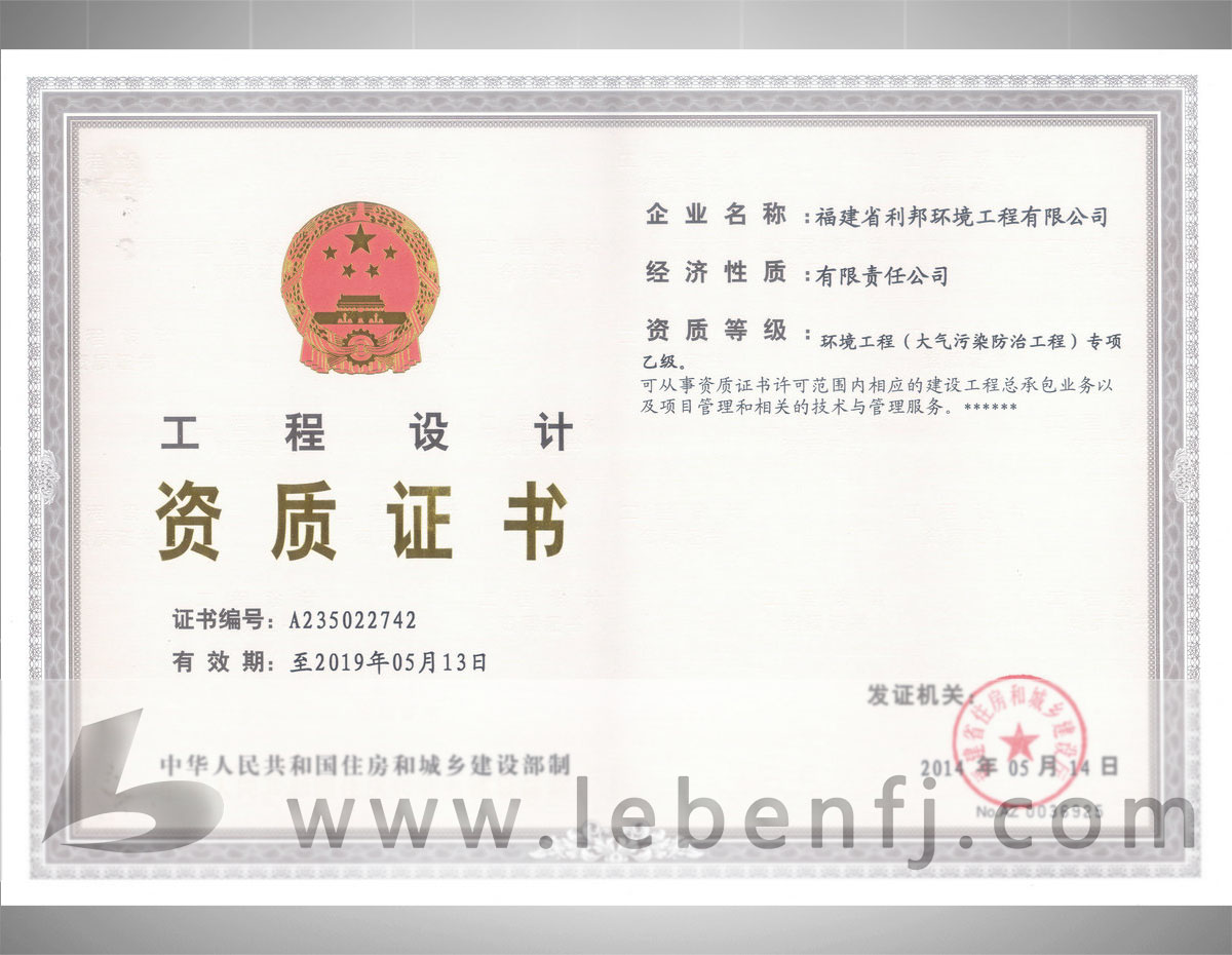 環(huán)境工程設(shè)計專項資質(zhì)(乙級)